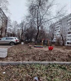 Двор ухожен, на въезде шлагбаум, во дворе детская площадка.