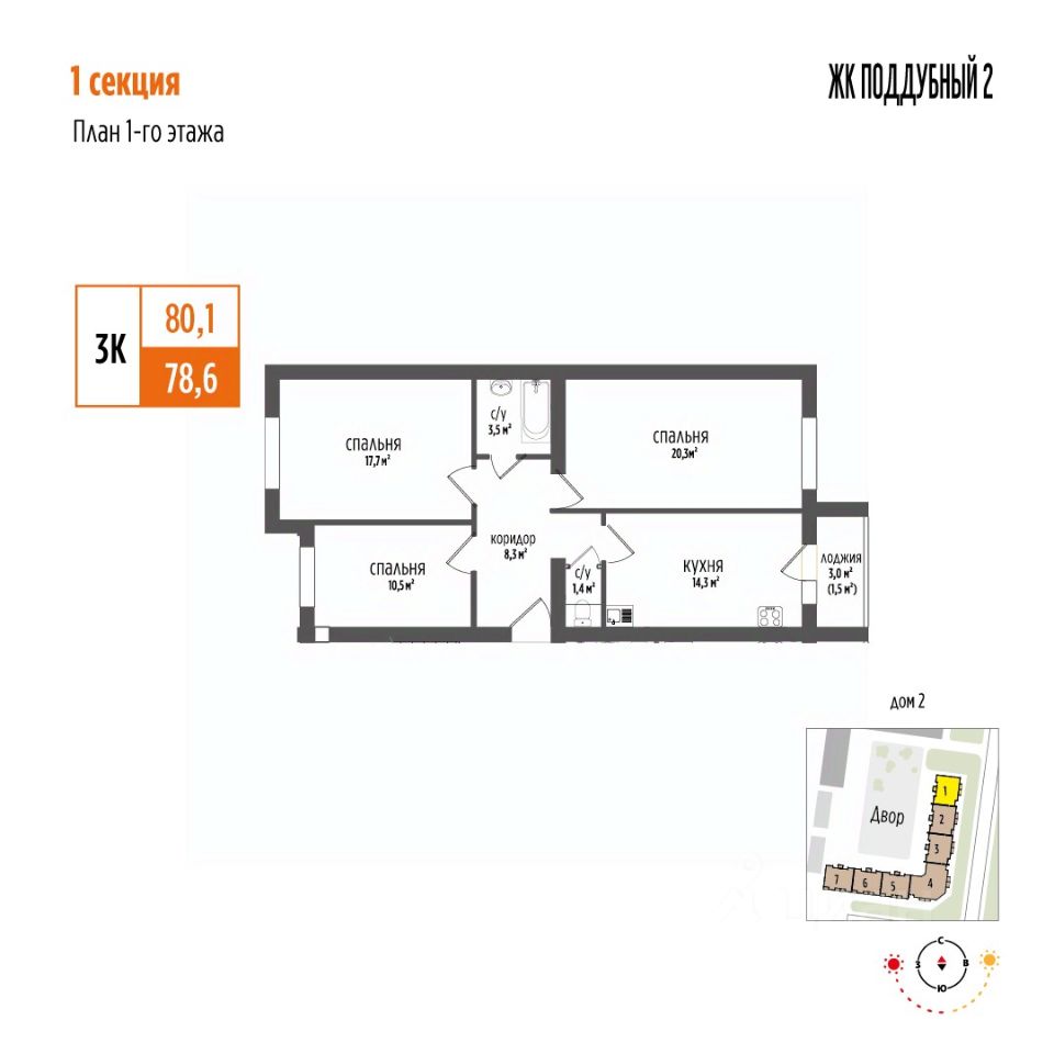 Продается 3-комнатная квартира 1 в ЖК Поддубный! Новый уютный ЖК в экологически чистом районе Петра Дубрава.