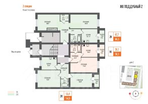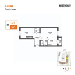 Продается 2-комнатная квартира 16 в ЖК Поддубный! Новый уютный ЖК в экологически чистом районе Петра Дубрава.