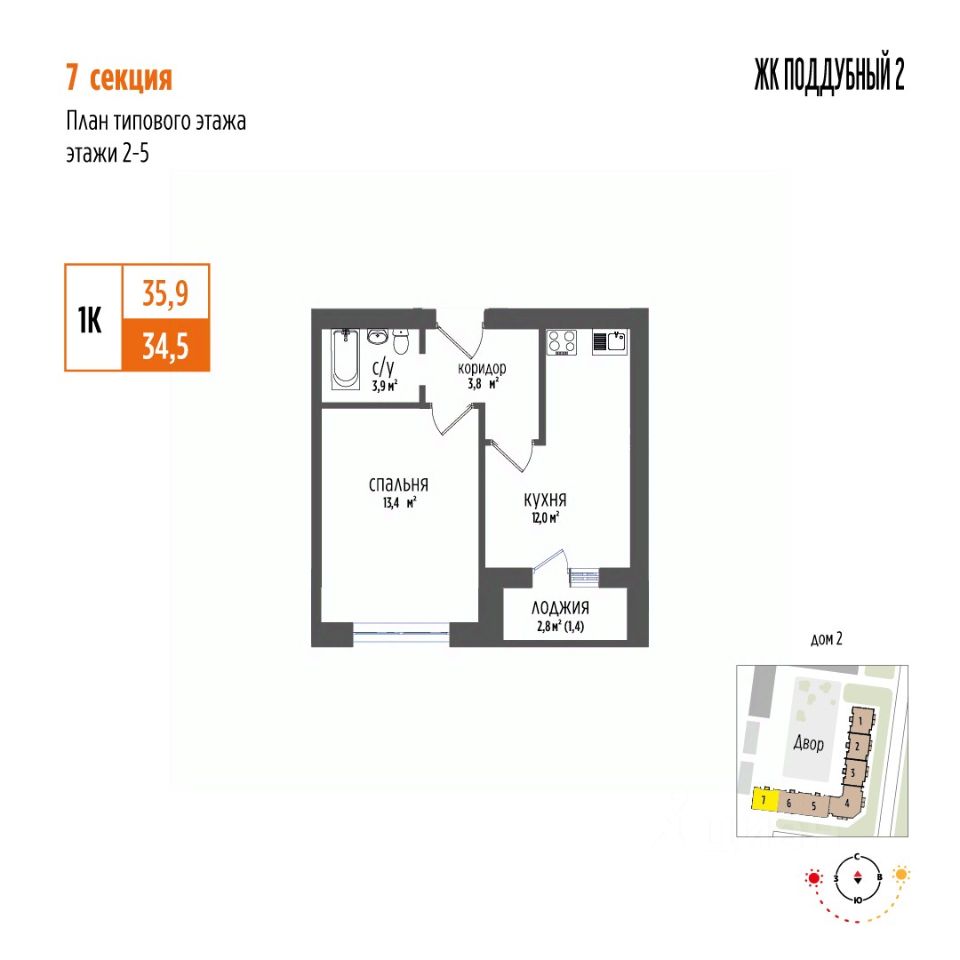 Продается 1-комнатная квартира 117 в ЖК Поддубный! Новый уютный ЖК в экологически чистом районе Петра Дубрава.