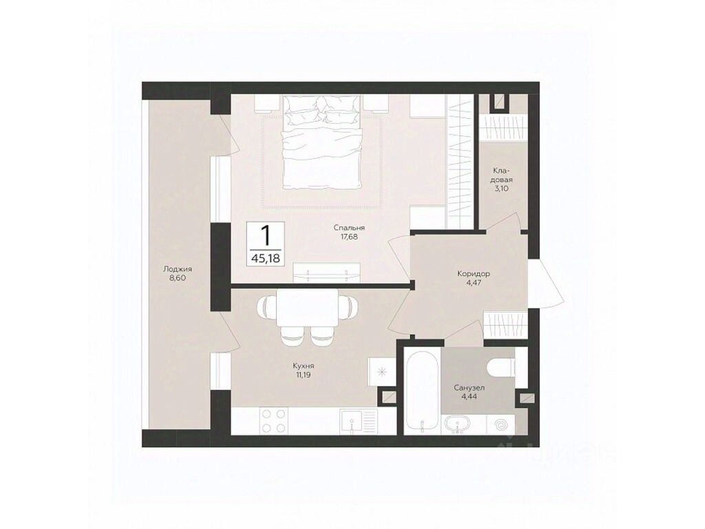 На пересечении улиц Антонова-Овсеенко и Советской Армии продается квартира площадью 45.18 кв. м с черновой отделкой. Квартира находится на 2 этаже 17 этажного дома, в жилом комплексе комфорт-класса "Скай". Застройщик - ГК "Развитие".