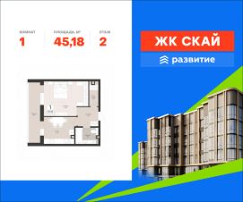 На пересечении улиц Антонова-Овсеенко и Советской Армии продается квартира площадью 45.18 кв. м с черновой отделкой. Квартира находится на 2 этаже 17 этажного дома, в жилом комплексе комфорт-класса "Скай". Застройщик - ГК "Развитие".