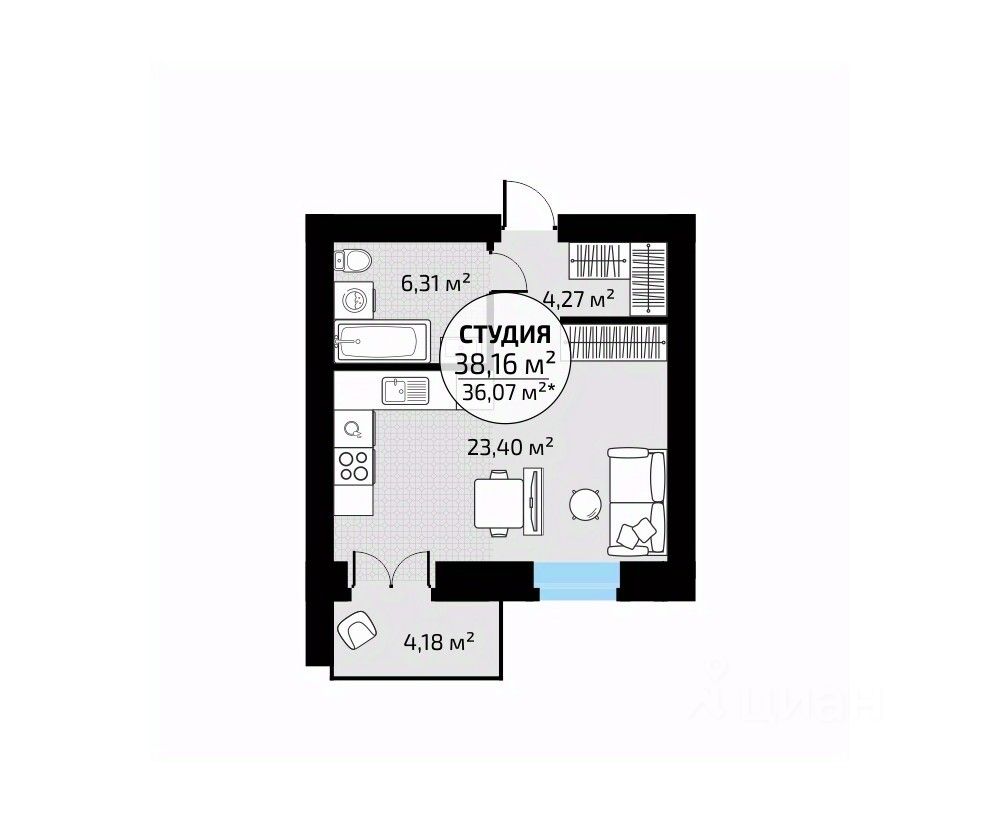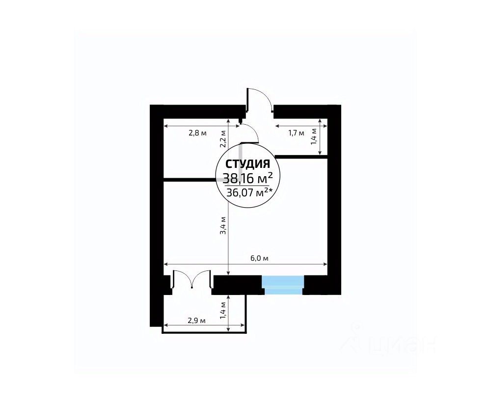 Общая площадь38,16 м²