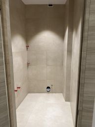 Вся электрика выполнена по ГОСТу с проводами в пожарозатухающей оболочке, автоматы и УЗО Legrand, розетки и выключатели Legrand продумано расположены. Санузлы с плиткой Italon, тёплыми полами и скрытыми лючками. Влагостойкий ламинат Tarkett 12 мм (класс 34) на пробковой подложке, итальянские обои, премиальные двери с анодированной фурнитурой.