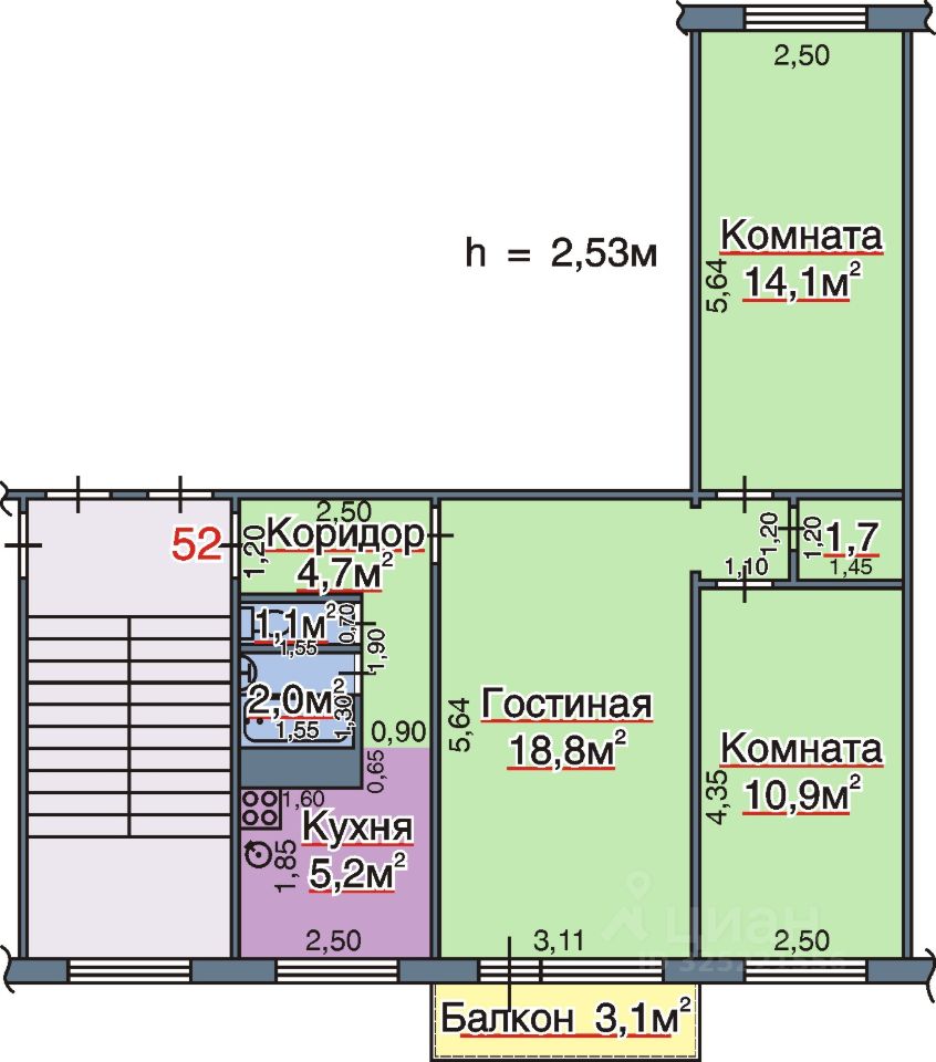 город Самара, улица Мориса Тореза, дом 22. В квартире 3 комнаты: 10,9; 14,1 и 18,8 кв.м. Кладовка 1,7 кв.м. Кухня 5,2 кв.м. Санузел раздельный: ванная 2,0 кв.м. и туалет 1,1 кв.м. Прихожая 4,7 кв.м. Балкон 3,1 кв.м. Все трубы и стояки в доме заменены. Установлены новые радиаторы и стеклопакеты. Есть счётчики на газ и воду.