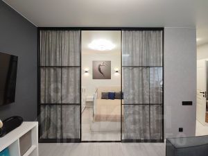 Элегантное зонирование: Раздвижная перегородка-купе с тонким профилем.