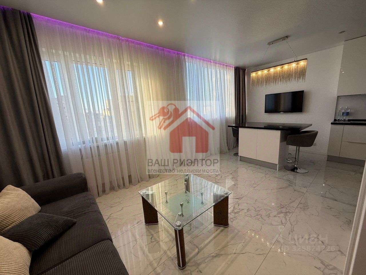 Просторная кухня-гостиная и отдельная спальня, ремонт завершён в сентябре 2022, использованы качественные и долговечные материалы. Современный дизайнерский ремонт - крупноформатный керамогранит, тёплые полы, полная замена проводки и коммуникаций, интернет-кабели, ТВ-антенна, кондиционер, водонагреватель на 80 литров, пятиступенчатая система очистки воды, кухня с островом, разводка под встроенную технику, санузел с качественной сантехникой и мебелью.