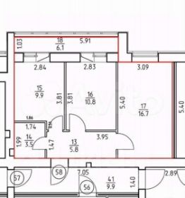 Площадь кухни: 9,09 кв. м (данные условные)
