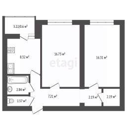2-х комнатная квартира. Объект на стадии предчистового ремонта: в санузле уложена плитка, по всем помещениям разведена электрика, стены и полы выровнены, что позволяет с минимальными затратами и в сжатые сроки завершить ремонт. Окна квартиры выходят на тихую сторону, на частный сектор, обеспечивая спокойную атмосферу без городского шума. Дом содержится в прекрасном техническом состоянии и оборудован надежными пассажирским и грузовым лифтами. Для жильцов и гостей организована удобная придомовая парковка.