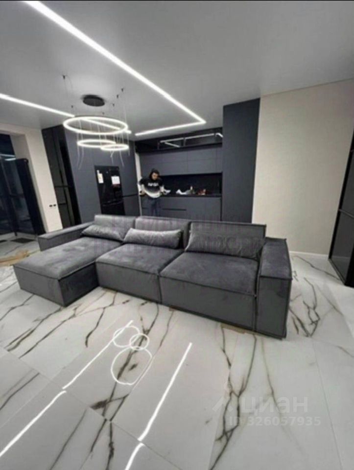 Просторные зоны отдыха: просторная гостиная с кухней, отдельная спальня с огромной гардеробной, уютная детская комната.