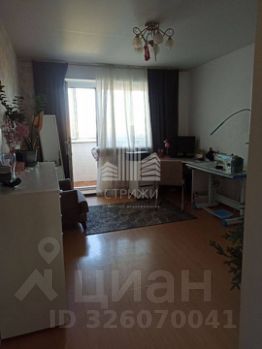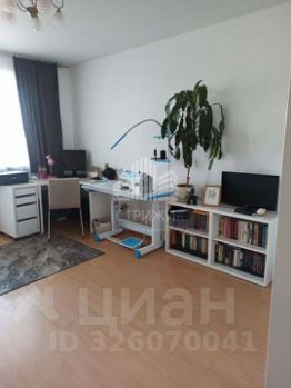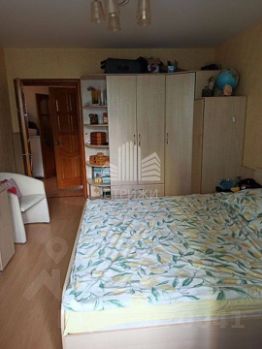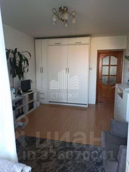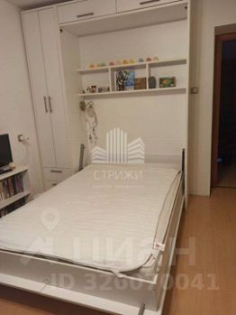 В детской комнате встроенная кровать, которую можно убрать в шкаф, натяжные потолки, на полу линолеум.