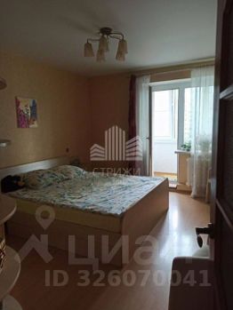 Спальня с выходом на лоджию, комната полностью укомплектована мебелью: кровать, прикроватные тумбочки, туалетный столик, вместительный шкаф.