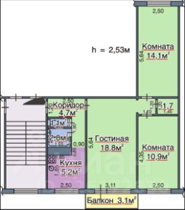 Общий метраж 58,1 кв.м
