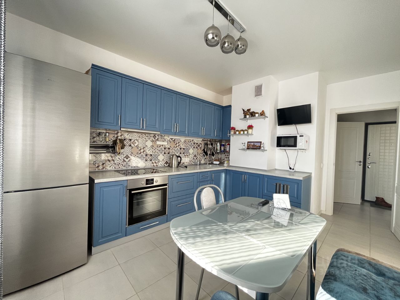 В квартире остаётся встроенный кухонный гарнитур, духовой шкаф и варочная панель Gorenje, вытяжка, кондиционер, оборудованная гардеробная, встроенный шкаф купе с зеркалами .