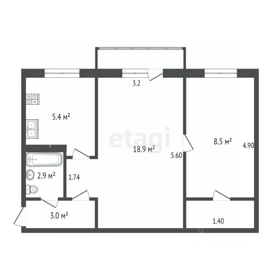 5,4 м²