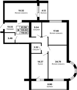 Общая площадь119,64 м²