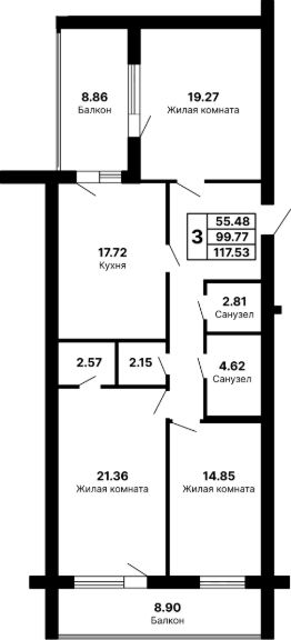Общая площадь117,53 м²