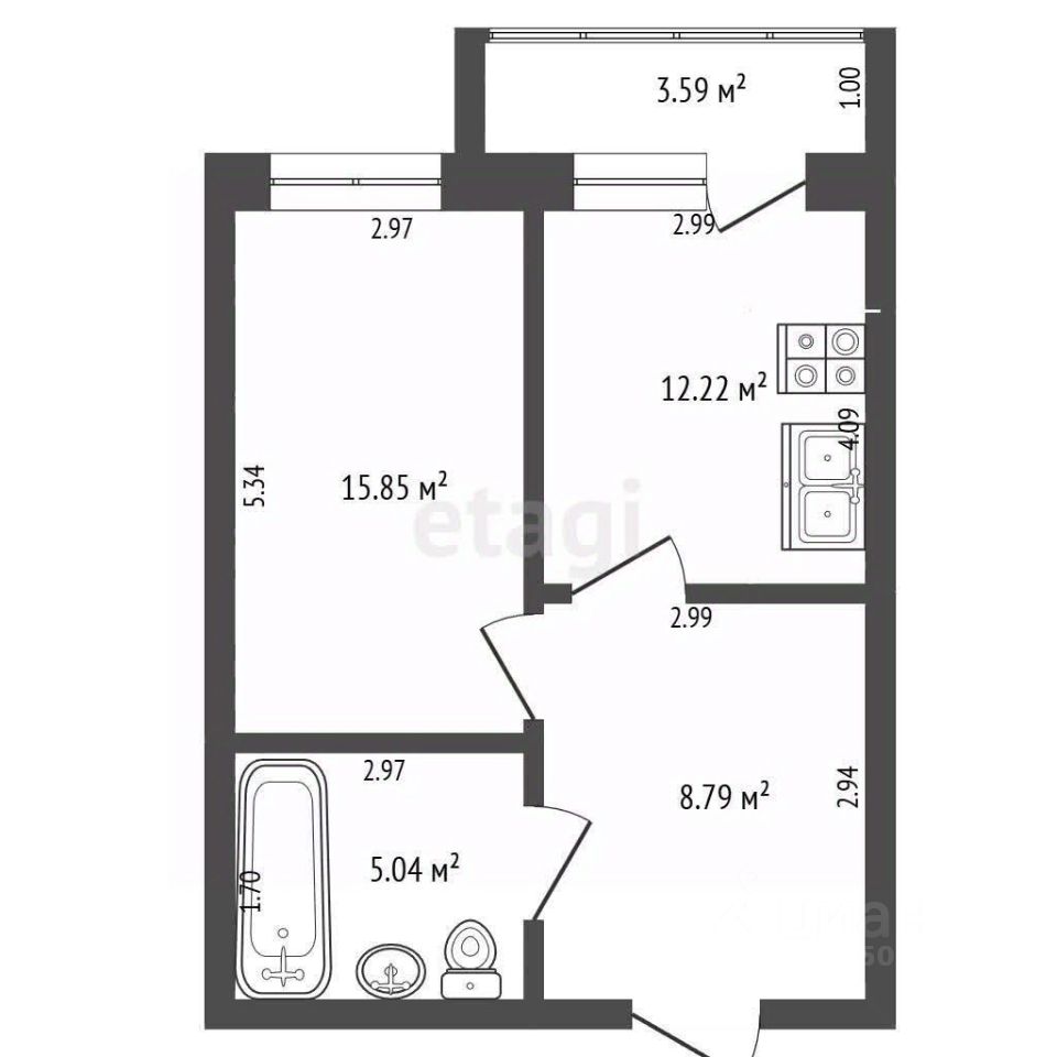 - Двухкомнатная квартира общей площадью 42 кв.м