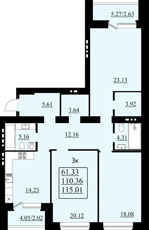 3-комн. квартира, 115,01 м²