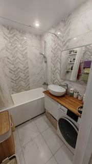 Квартира полностью укомплектована новой техникой (вся встраиваемая техника фирмы BOSCH (4,6 серия), холодильник фирмы HOTPOINT) и мебелью. Ремонту 2,5 года, делался для себя.