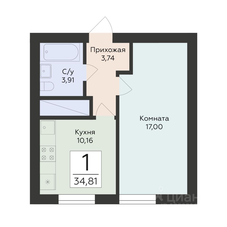 Общая площадь34,81 м²