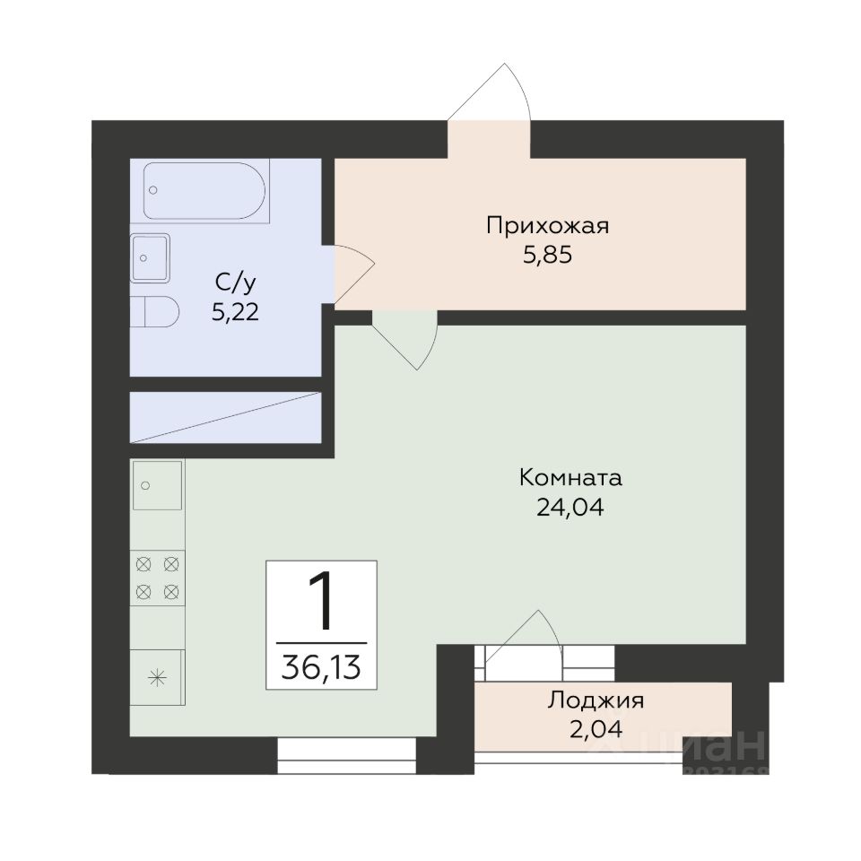 Общая площадь36,13 м²