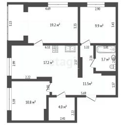 Предлагается просторная трехкомнатная квартира общей площадью 77,8 м² в современной новостройке, расположенной на высоком 19-м этаже из 22 возможных этажей монолитно-кирпичного дома. Здесь каждый найдет всё необходимое для комфортного проживания всей семьей.
