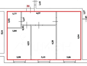 Общая площадь: 55 м²