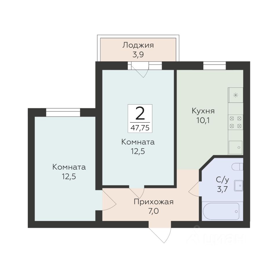 Общая площадь47,75 м²