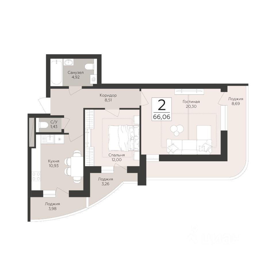 Продаётся 2-комнатная квартира в строящемся доме (Корпус 1), срок сдачи: III-кв. 2027, общей площадью 66.06 кв.м., на 5 этаже. Новый жилой комплекс "Скай" от застройщика "ГК Развитие" расположен по адресу Россия, Самара, улица Советской Армии.