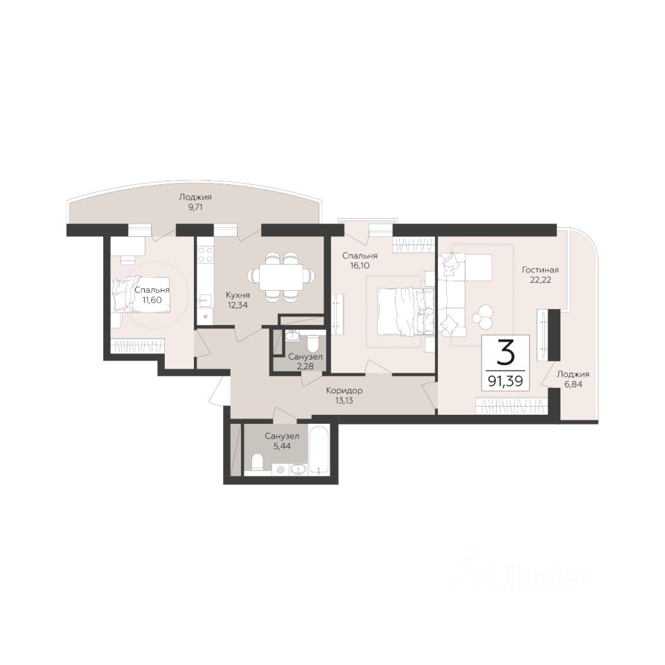 Продаётся 3-комнатная квартира в строящемся доме (Корпус 1), срок сдачи: III-кв. 2027, общей площадью 91.39 кв.м., на 11 этаже. Новый жилой комплекс "Скай" от застройщика "ГК Развитие" расположен по адресу Россия, Самара, улица Советской Армии.