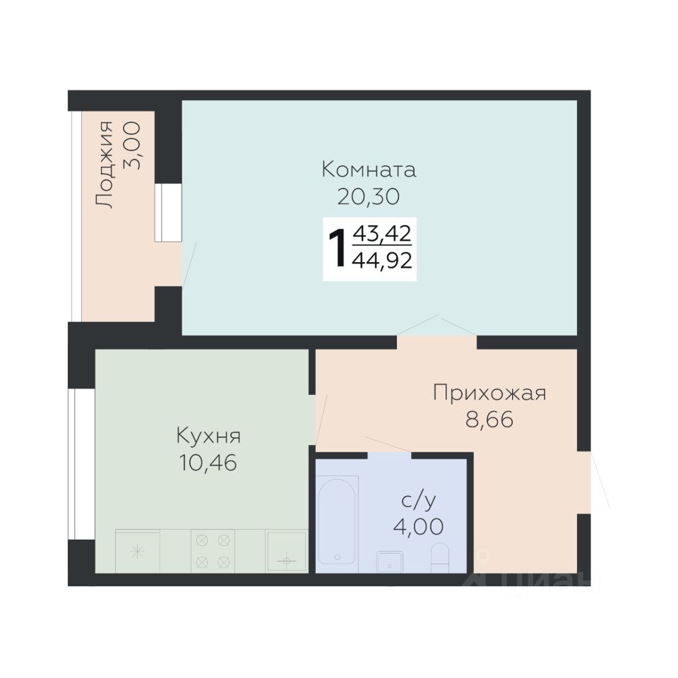 Общая площадь44,92 м²