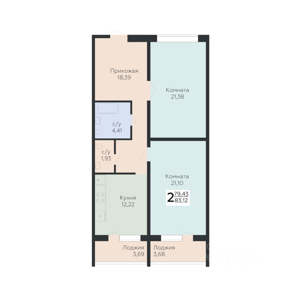 Общая площадь83,12 м²