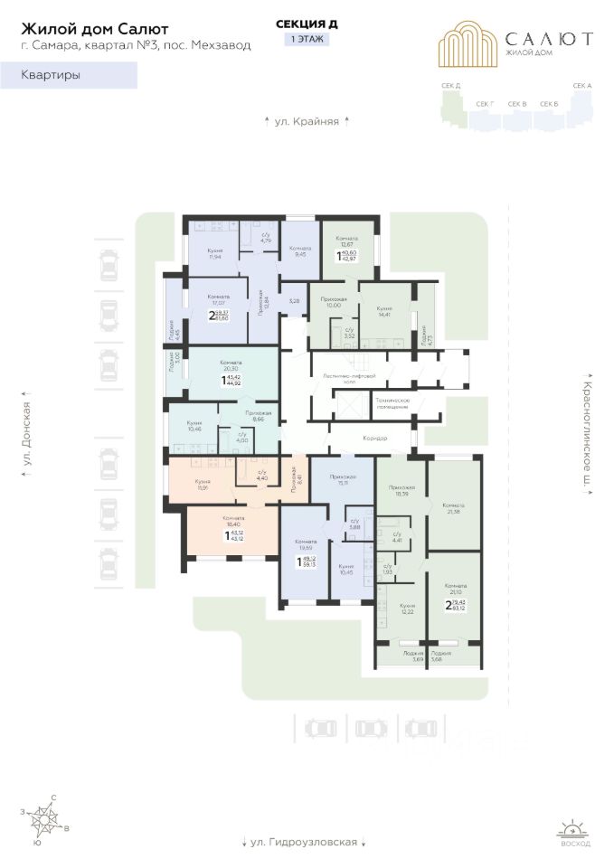 Жилой дом "Салют" расположился в уютном "зеленом" районе г. Самара, у сквера "Октябрь". В пешей доступности для жителей уже имеется вся развитая инфраструктура, которая сделает жизнь будущих жителей удобнее и комфортнее: школы, детские сады, поликлиники, супермаркеты и другие повседневные сервисы. В непосредственной близости находится Московское шоссе — одна из главных артерий города. До остановки общественного транспорта 7 минут ходьбы. Жителям будет комфортно начинать путешествие и возвращаться домой. Путь до центра на автомобиле займет 15-20 минут. Здесь есть все необходимое для комфортной жизни семей с детьми. В непосредственной близости от комплекса расположены супермаркеты, а за более крупными покупками можно отправиться в ближайшие торгово-развлекательные центры - "Мега" и "МИР". В квартирах выполнена отделка white-box. Благоустройство прилегающей территории включает в себя организацию зон отдыха, детский городок и спортивные площадки, автостоянка, а также комплексное озеленение. Покупая квартиру в ГК Развитие, вы получаете дополнительно БЕСПЛАТНО: Помощь в одобрении и получении ипотеки с минимальной процентной ставкой; ПОЛНОЕ ЮРИДИЧЕСКОЕ СОПРОВОЖДЕНИЕ от сбора документов до регистрации права собственности; Консультация и подбор удобного объекта в любое УДОБНОЕ ВРЕМЯ.