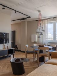 Эта квартира сочетает в себе современный комфорт, экологичность и передовые технологии благодаря использованию натуральных материалов высокого качества и умным инженерным решениям.