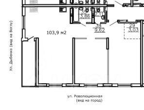 Общая площадь 104 м², высокие потолки, 23 этаж — из всех окон открывается панорамный вид на город, Волгу и Жигулёвские горы. Все окна видовые, выходят на ул. Дыбенко и ул. Революционная.