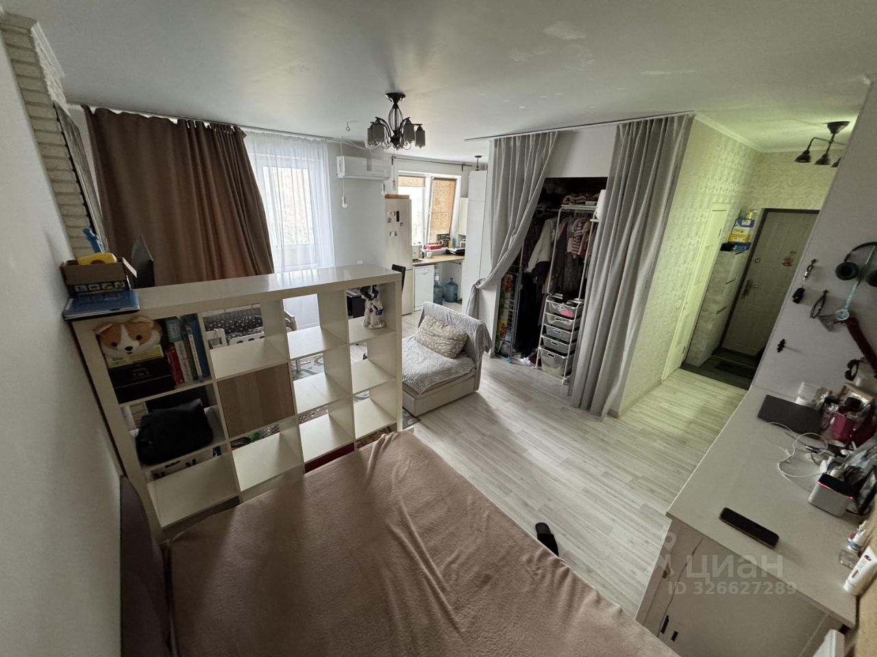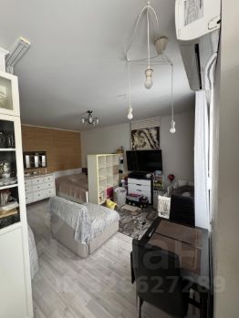 Продаётся светлая и функциональная студия площадью 33,8 м² в жилом комплексе Южный город, улица Весенняя, дом 3. Квартира расположена на комфортном 2м этаже. Планировка очень удобная: есть отдельная спальная зона с большой кроватью, полноценная кухня с обеденным столом, гостиная с местом под ТВ и детский уголок, а также выделенная гардеробная за шторами. Санузел совмещённый, с ванной, стиральной машиной и местом для хранения.