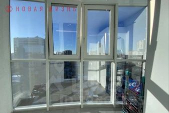 На лоджии панорамное остекленение, вид на Ярморочную, установлен шкаф ИКЕА.