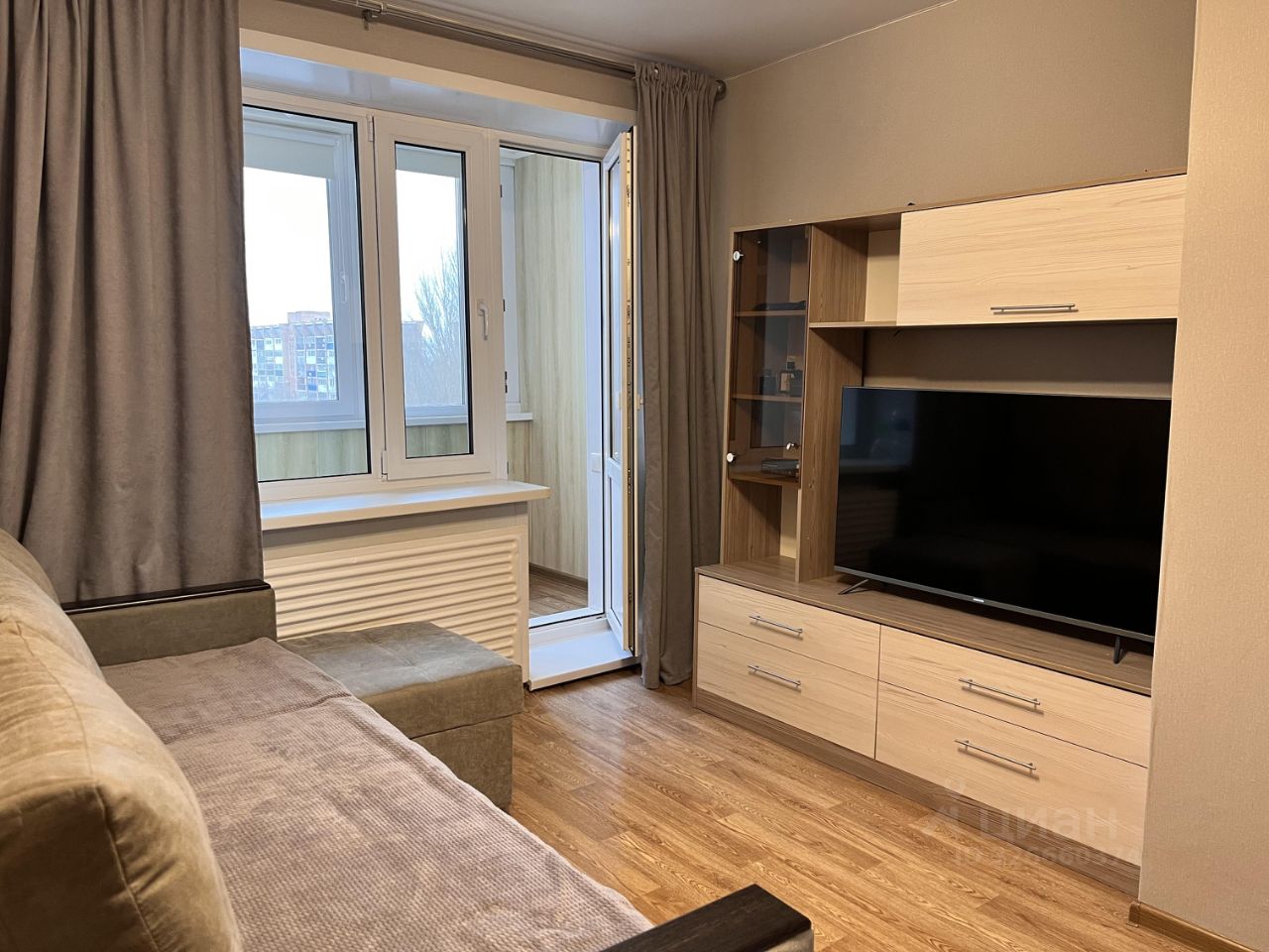 В квартире новому владельцу остается шкаф-купе, качественный кухонный гарнитур с газовой плитой, стенка под телевизор и места хранения на лоджии с кухонной и комнатной стороны.