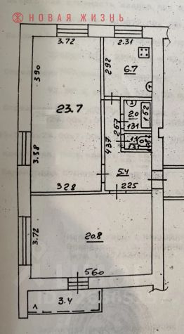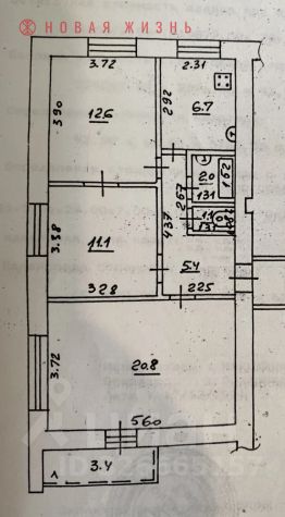 Три раздельных жилых комнаты. Большой зал 20,8м2, две другие 11,1м2 и 12,6м2.