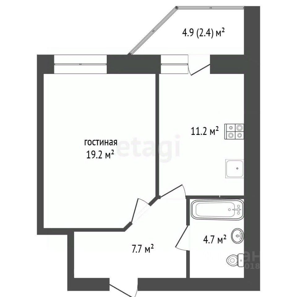 • Просторные 42,8 м² — хорошая площадь для однушки: есть где развернуться и создать уют