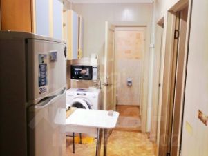 По договоренности возможна передача всей имеющейся мебели и техники, включая холодильник и стиральную машину. Планировка позволяет оборудовать функциональный кухонный уголок на площади 8.7 м². Дом оснащен пассажирским и грузовым лифтами, мусоропроводом; во дворе организована детская площадка и открытая парковка.