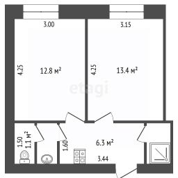 Срочно продается изолированная двухкомнатная квартира "малосемейка" общей площадью 42 м² на 8 этаже 9-этажного кирпичного дома.
