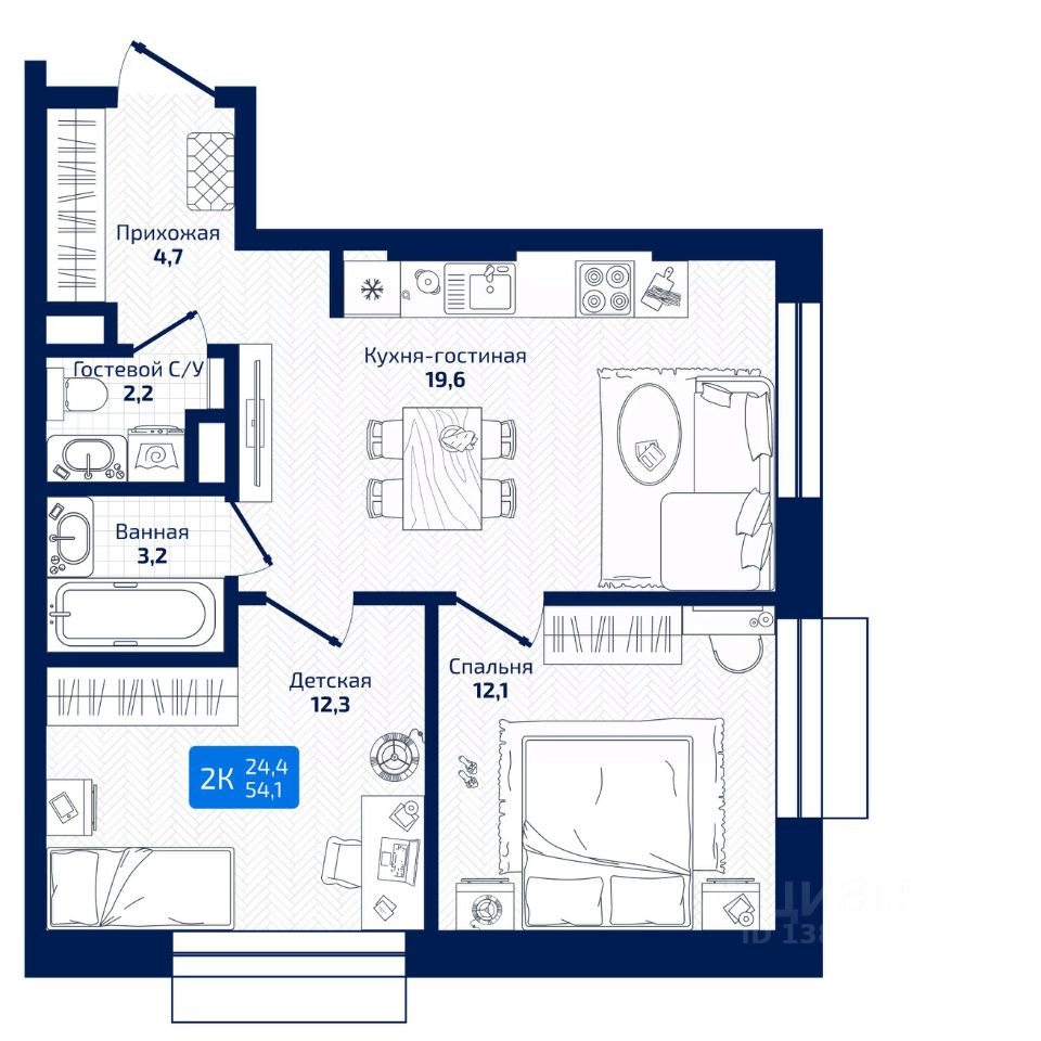 Общая площадь54,1 м²