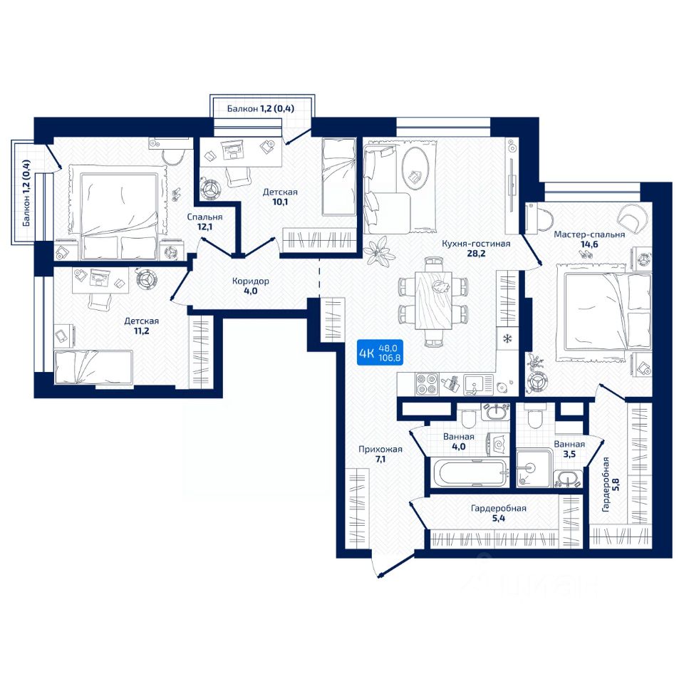 Общая площадь106,8 м²