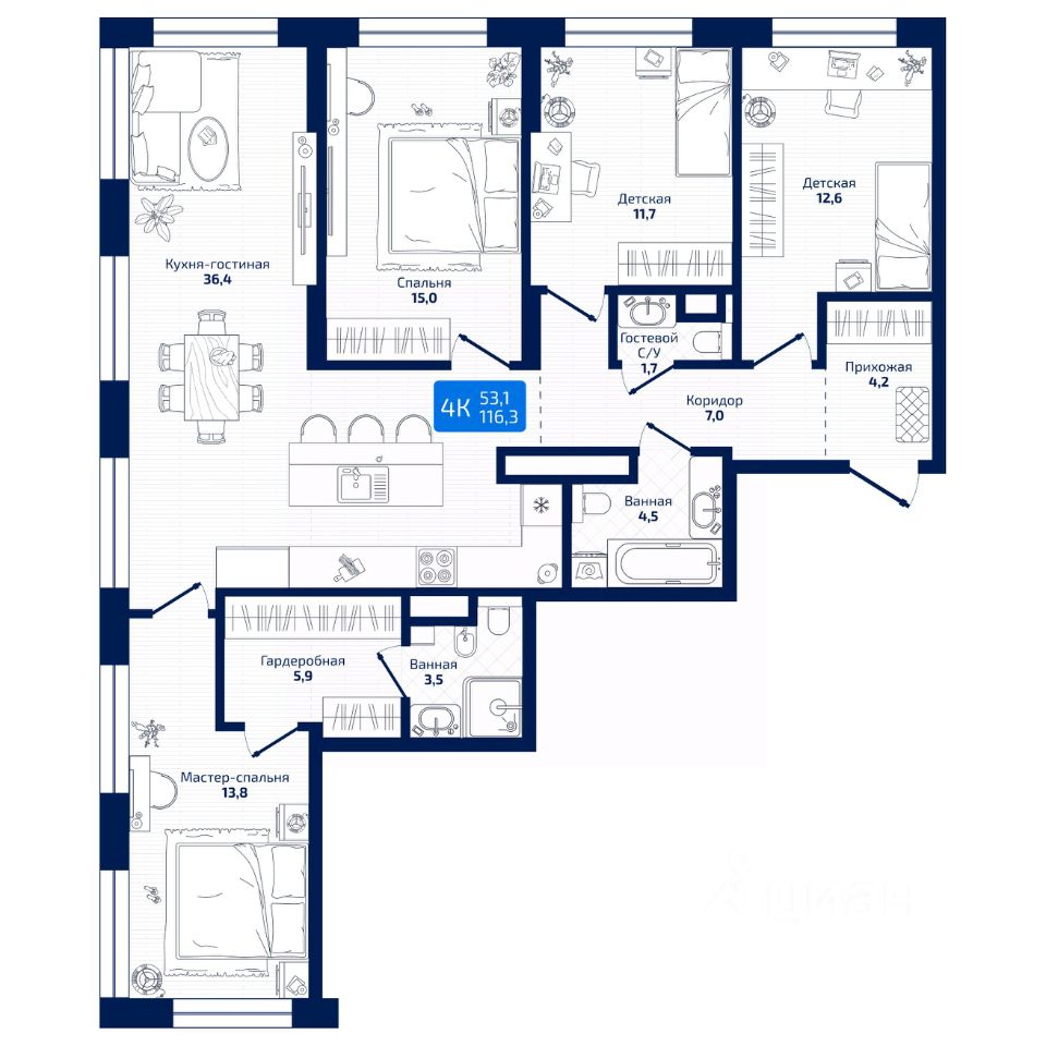 Общая площадь116,3 м²