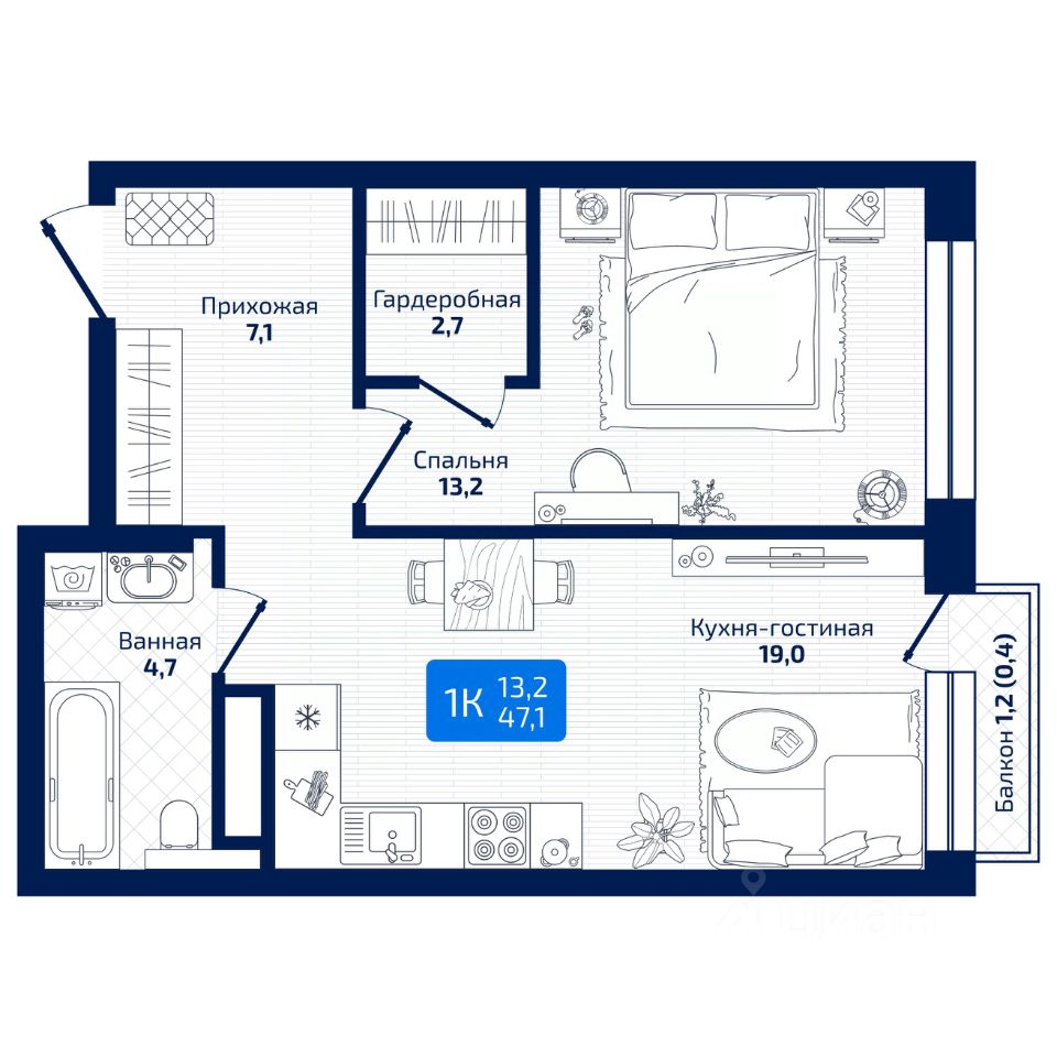 Общая площадь47,1 м²