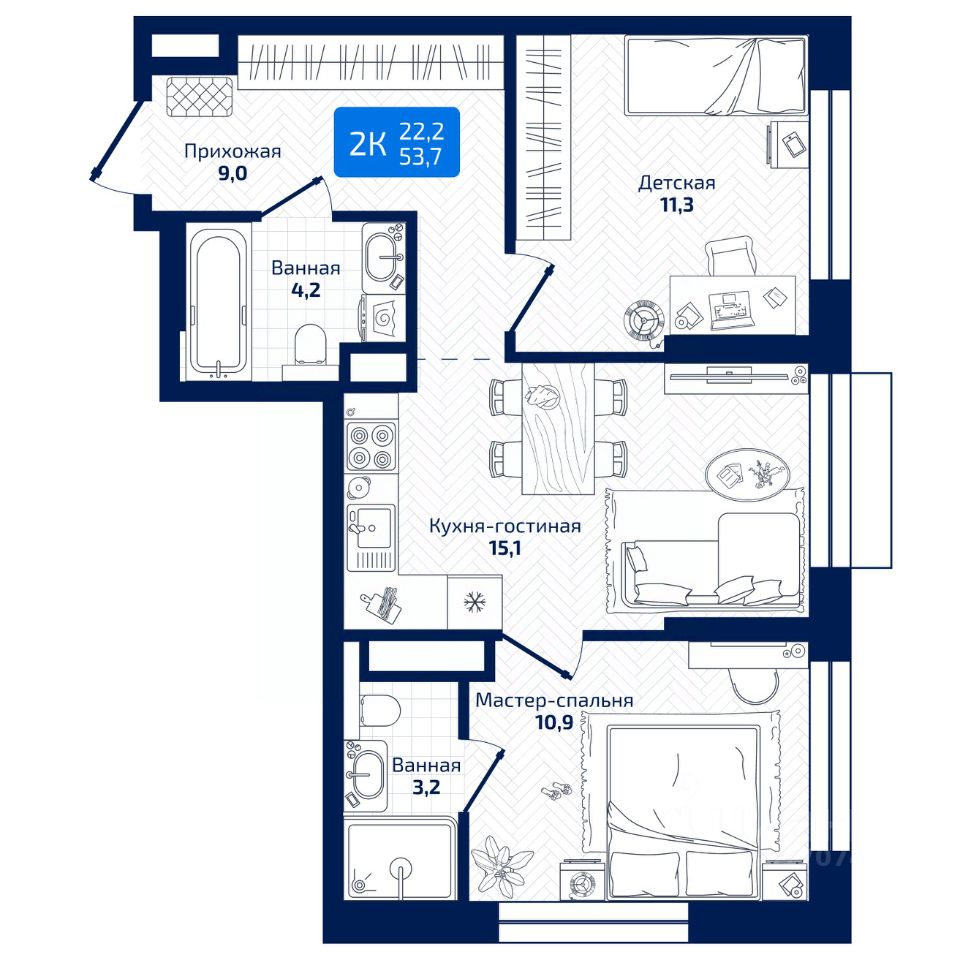 Общая площадь53,7 м²