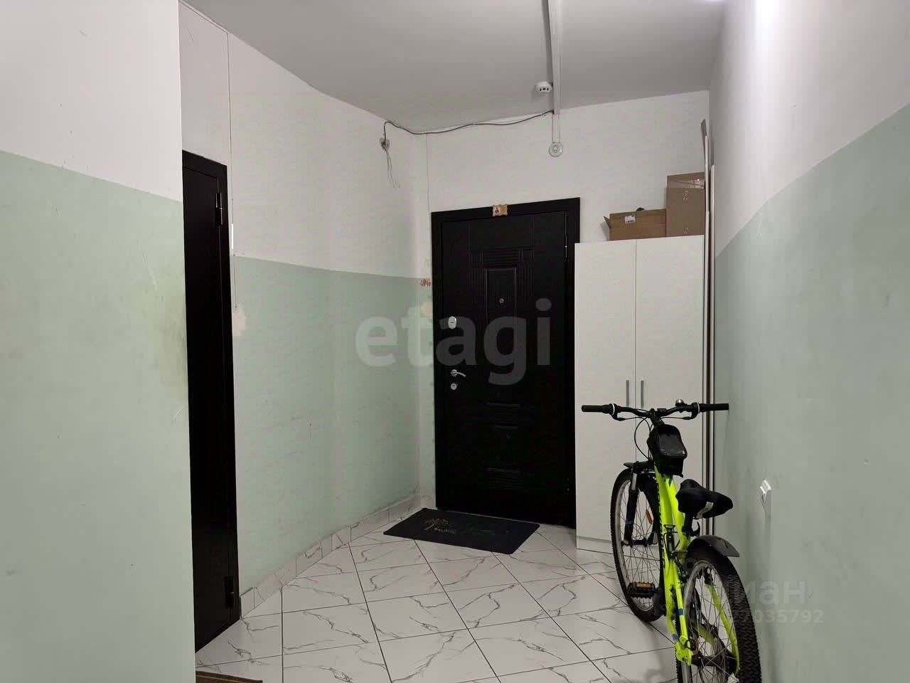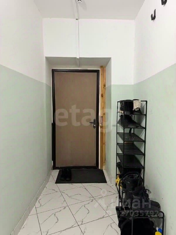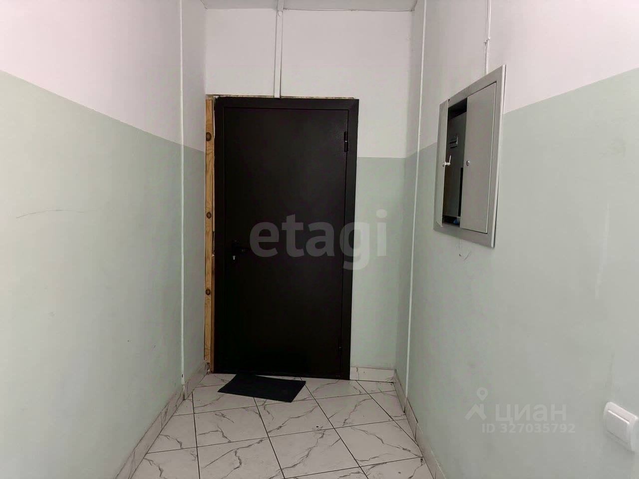 Общий тамбур в подъезде на две квартиры, можно установить дополнительно шкаф или стеллаж. Места для хранения достаточно, что не маловажно для однокомнатной квартиры.