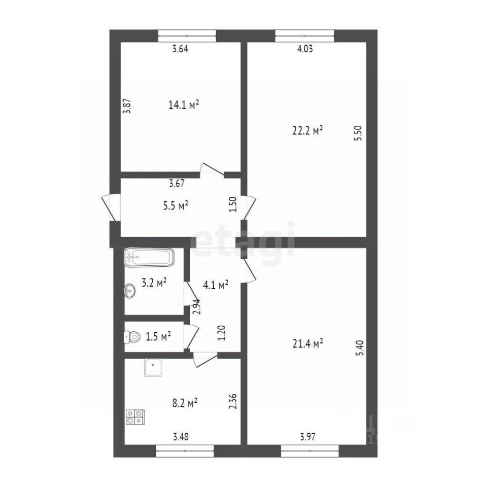 Продается уникальная 3-комнатная квартира 80,7 м2.